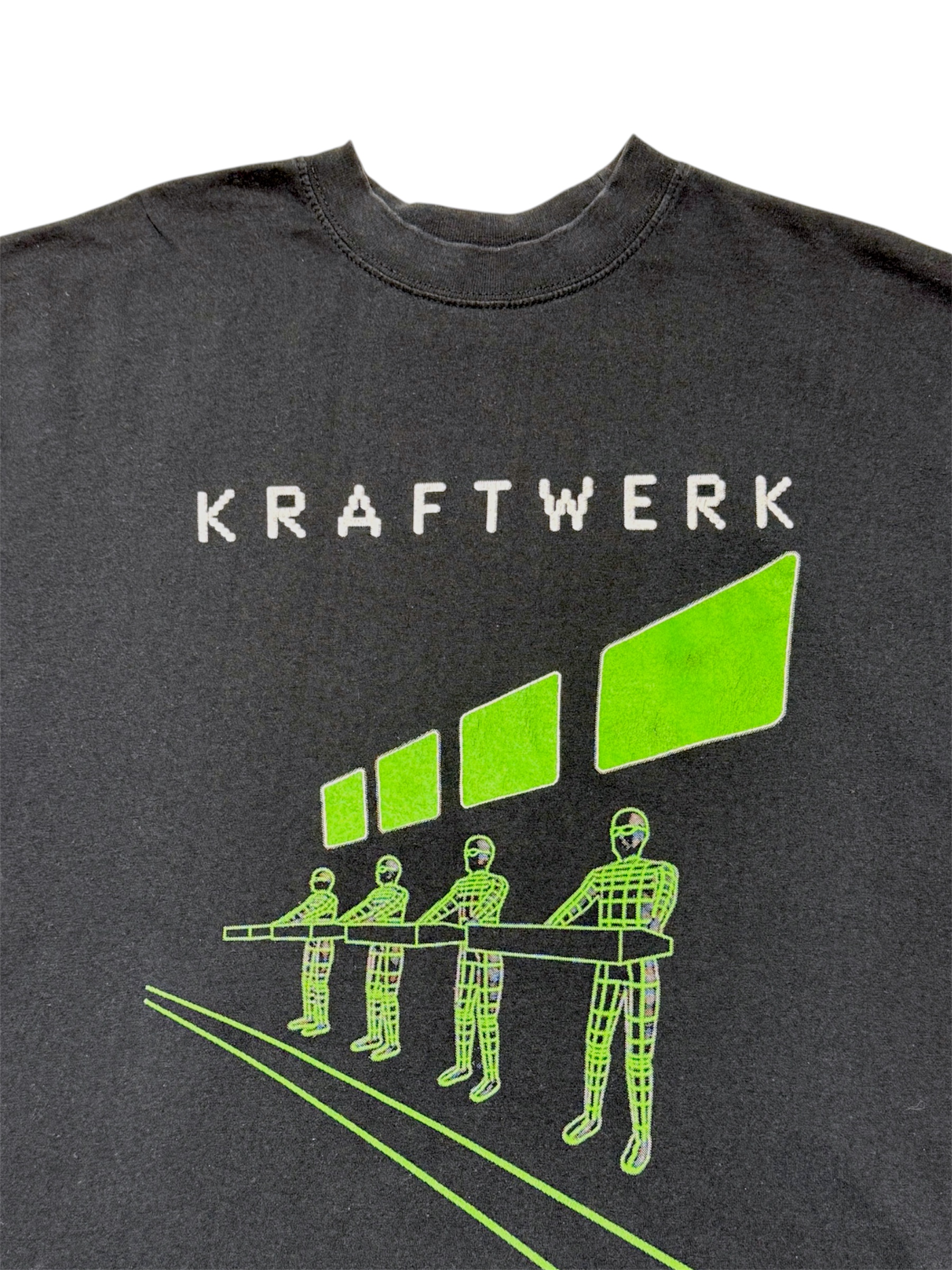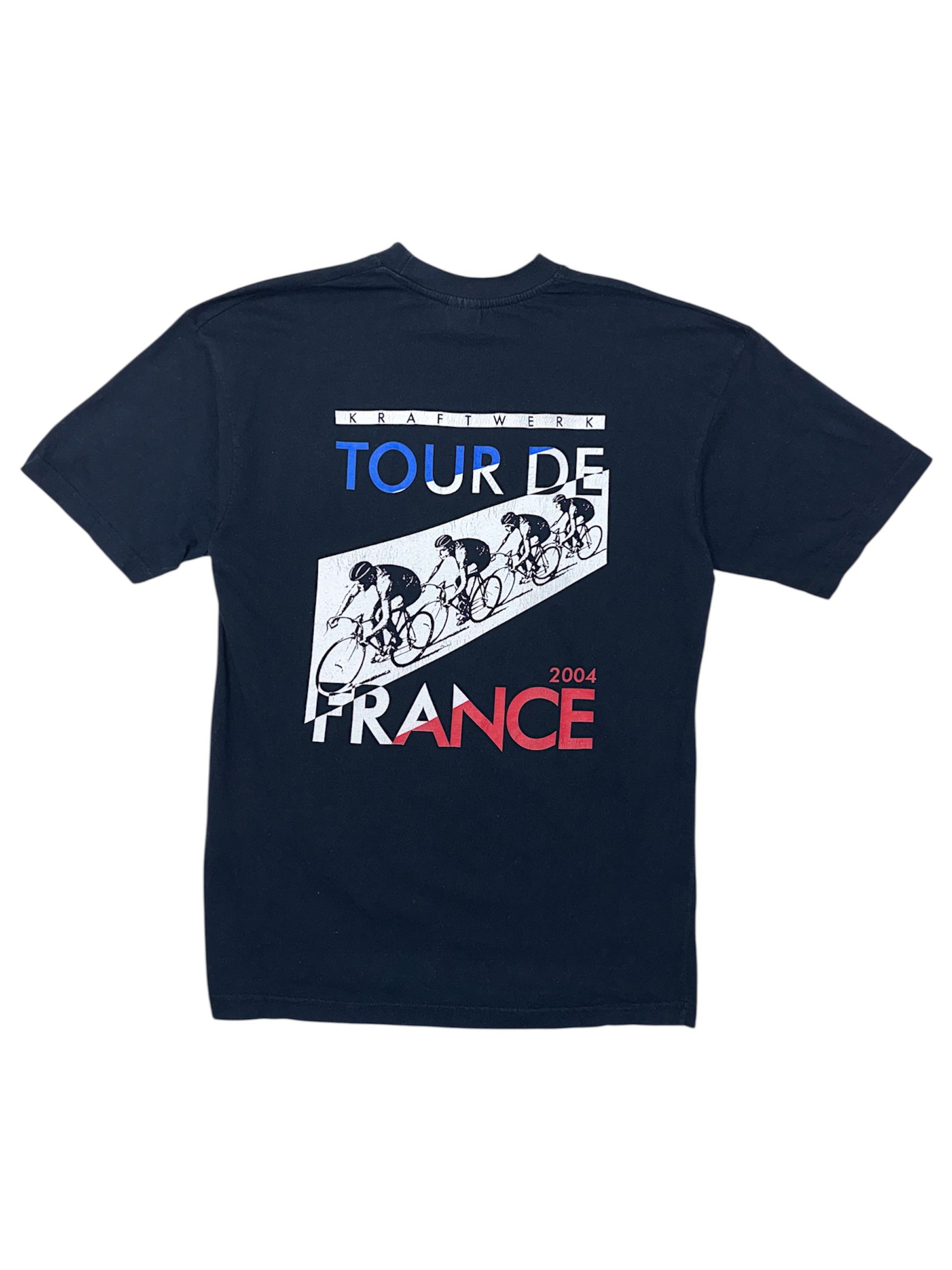 A 2004 promotional Kraftwerk Tour de France T-shirt, tied to the band’s iconic futuristic visual language and their landmark electronic music legacy.