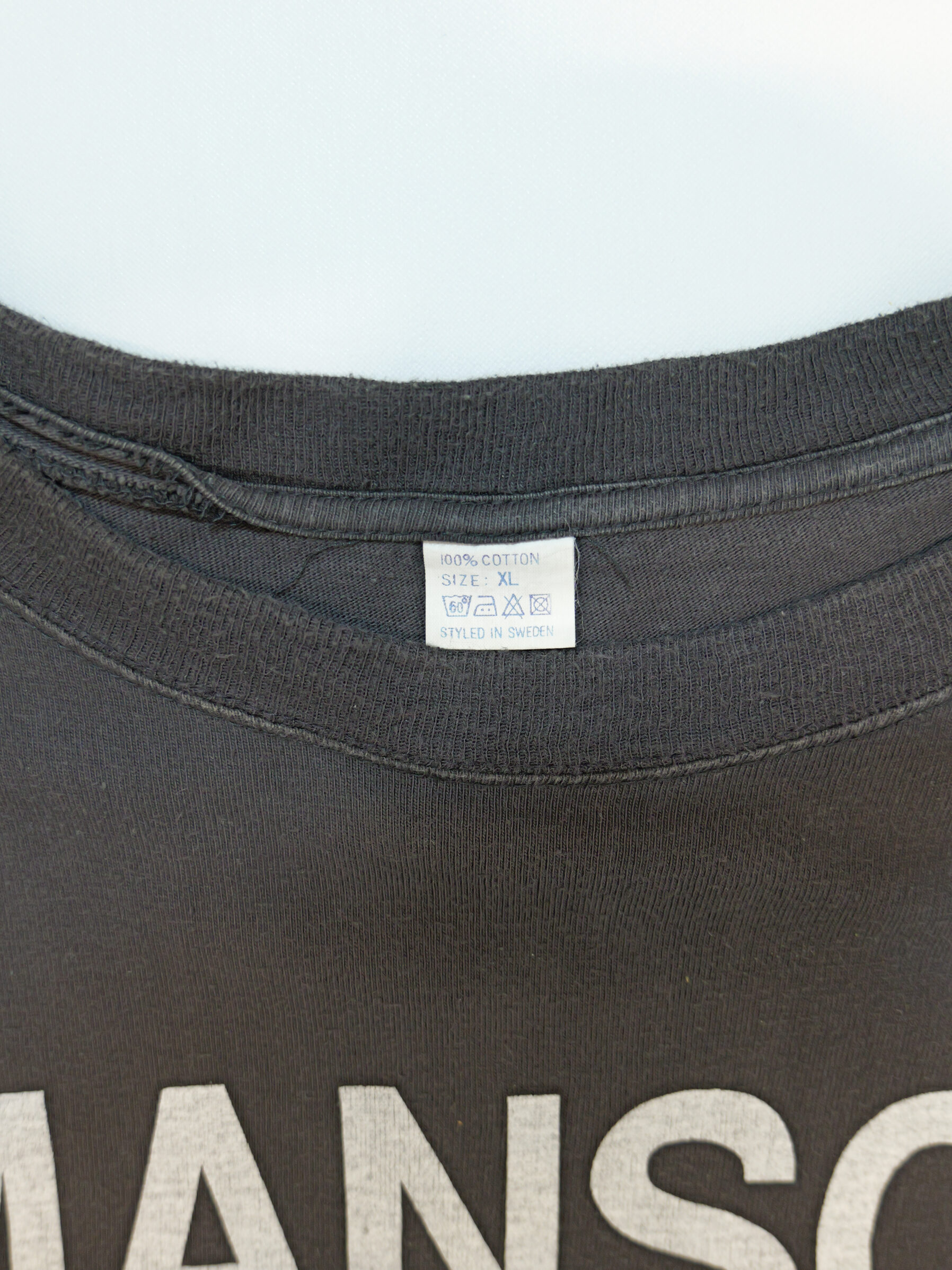 Manson “Free the son of man” t-shirt from 90′ Charly Manson was a cult leader behind murders in 1969. He died in prison.